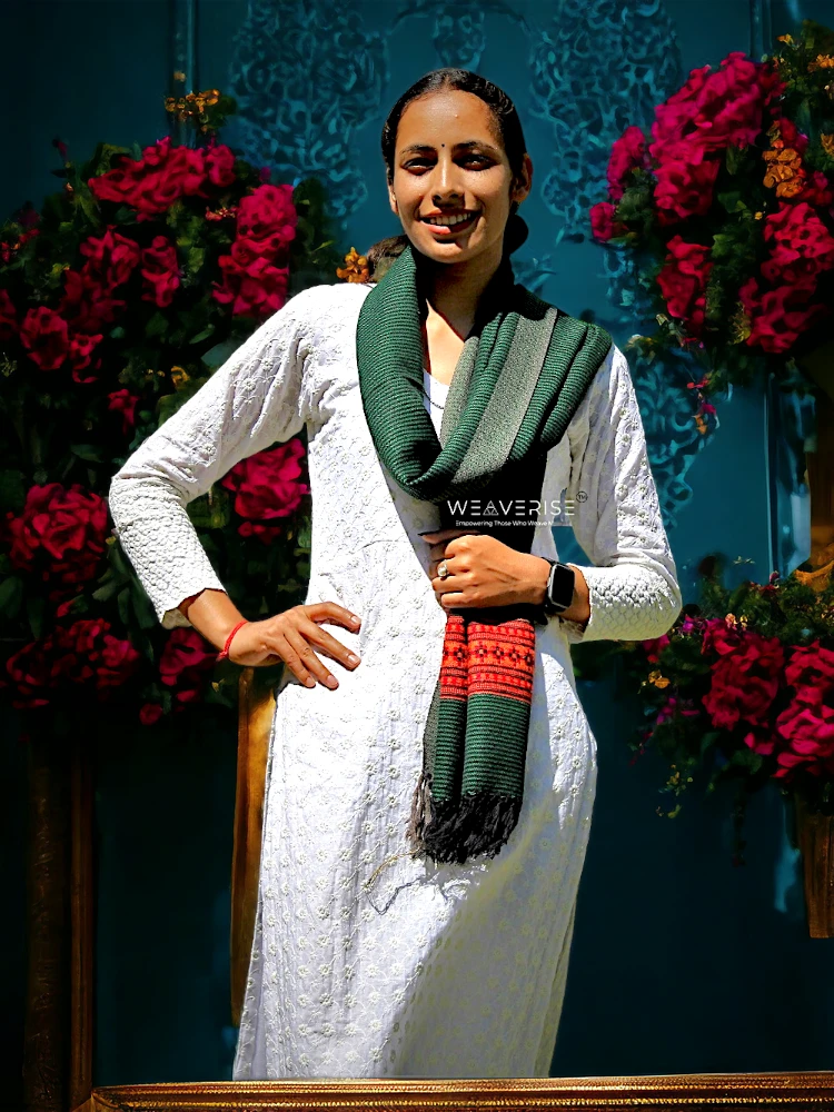 Artisan-Made Stole – Premium Loom Woven Scarf in Green Color