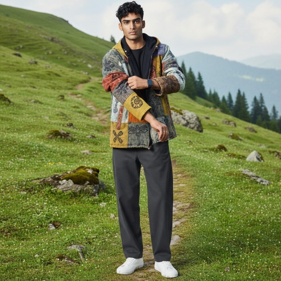 The Boho Patchwork Design blends earthy tones with tribal motifs, reflecting authentic Pahadi vibes. Whether you’re exploring mountain trails or lounging at home, this Hippie Hoodie Jacket brings both comfort and culture into your wardrobe.