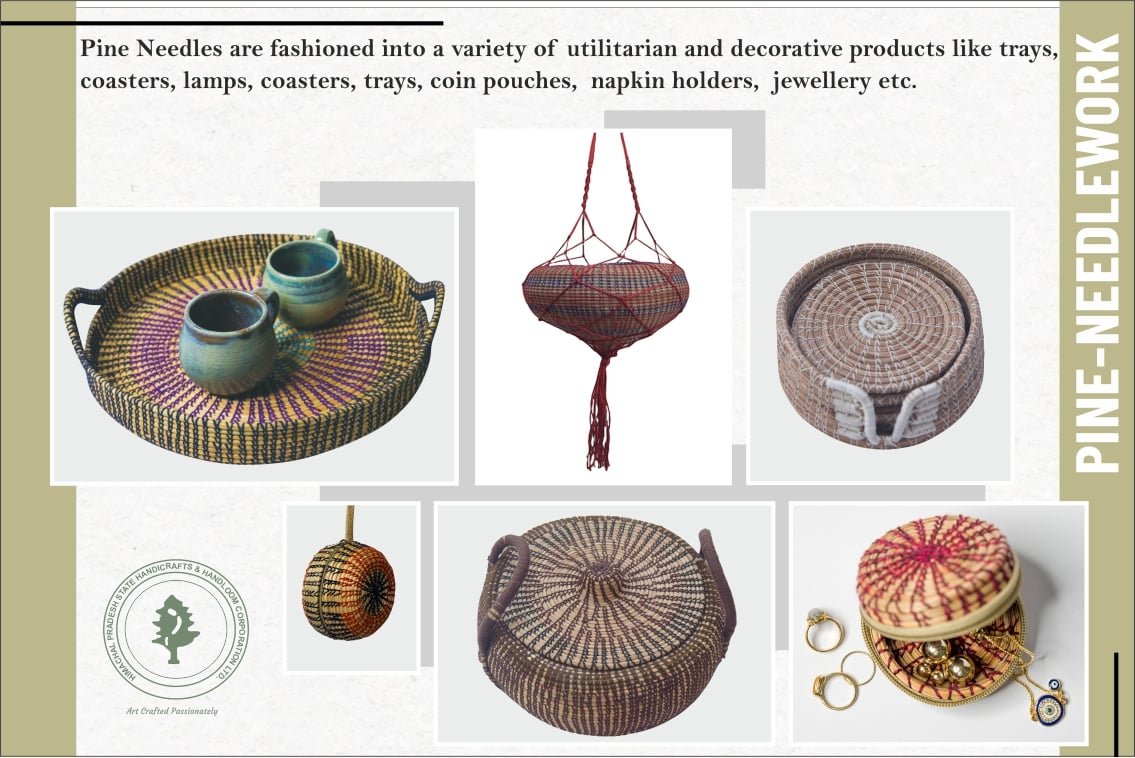 In the lush pine forests of Himachal Pradesh, a quiet but impactful revolution is taking place — one that blends sustainability, creativity, and rural empowerment. Artisans, particularly women, are turning fallen pine needles (chir pine) into beautiful, functional handicrafts. Known as Pine Needlework, this eco-conscious craft has become a unique symbol of Himachal’s resourceful spirit and artistic heritage.