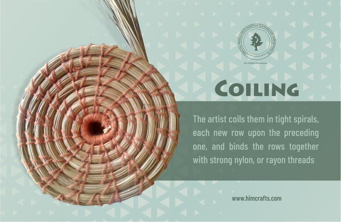 Coiling & Stitching: Using cotton threads, jute, or natural fibers, artisans coil the needles and stitch them together in a spiral or patterned format.
